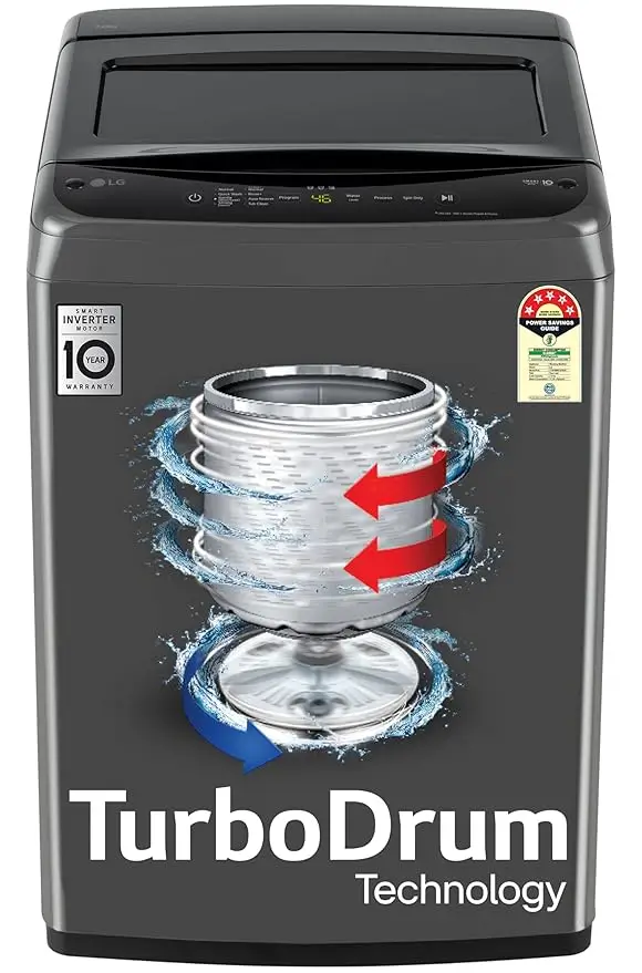 The LG 7 kg fully-automatic top load washing machine offers excellent wash quality, ideal for families of 3–4 members. It is powered by Smart Inverter Technology with 5-star energy efficiency, including silent operation with up to 36% energy savings. It features 8 wash programs, including Gentle, Quick Wash, Strong, and Tub Clean, while the TurboDrum delivers powerful cleaning. The LED display, smart diagnosis, and auto-restart add user convenience. With 740 RPM spin speed, soft-closing lid, and safety features like child lock and voltage protection, it’s a smart, durable, and efficient laundry solution.